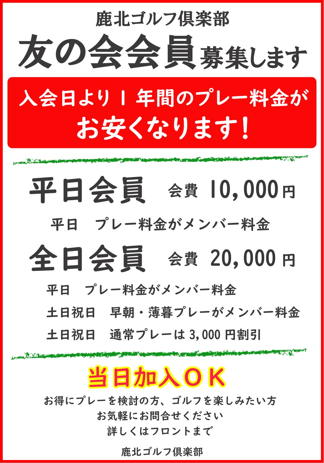 この度、皆様にさらにお得にゴルフを楽しんでいただくための「友の会」会員を募集しております!